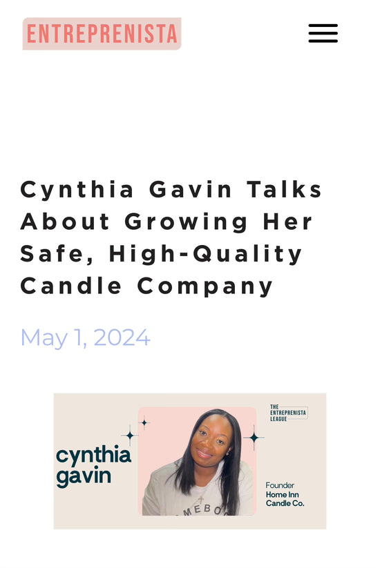 I am Cynthia “Cyn” Gavin, the Owner, Founder and Maker of Home Inn Candle Co. Home Inn Candle Company is a Small, Black Woman Owned Home Fragrance Brand.
