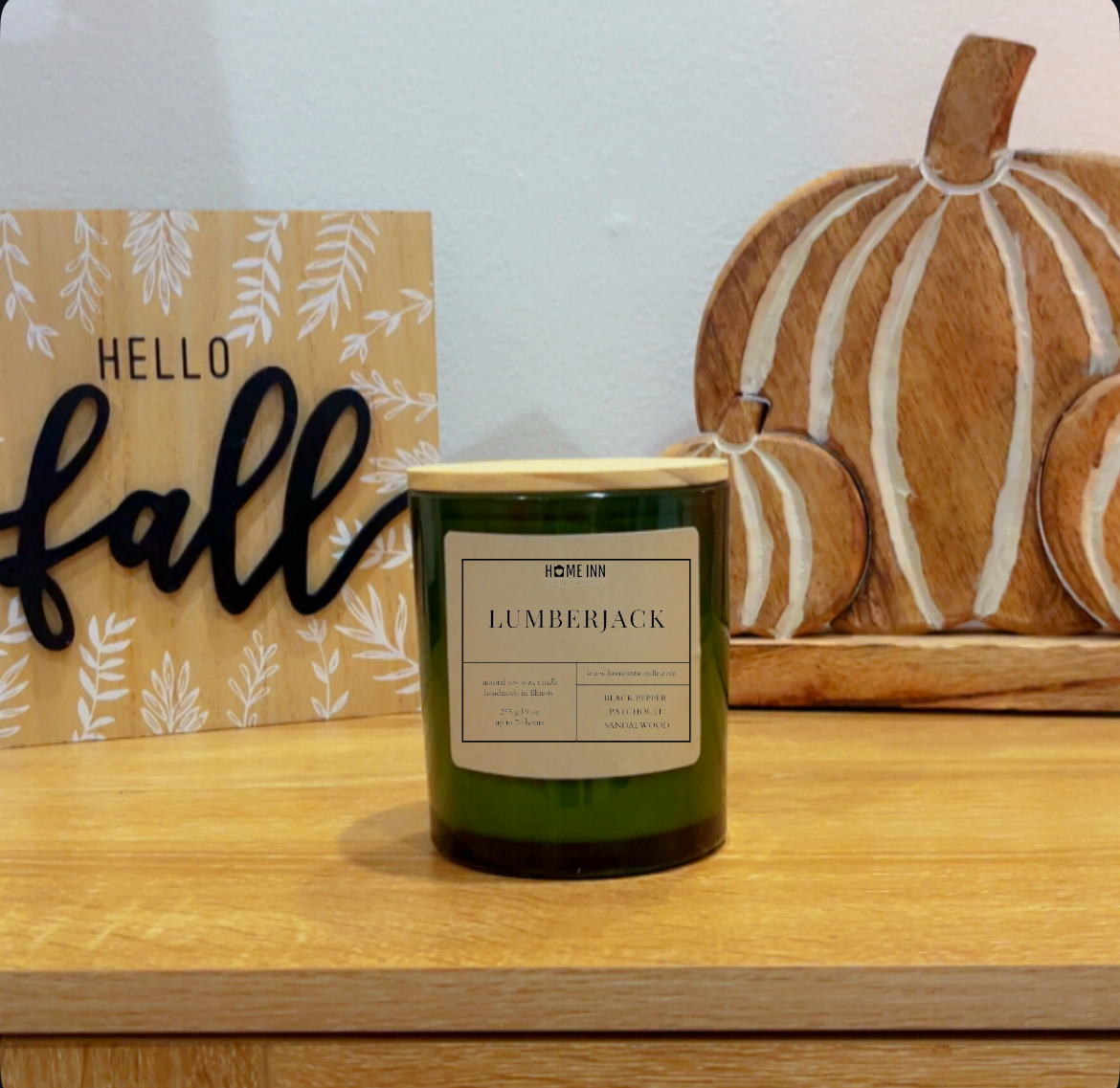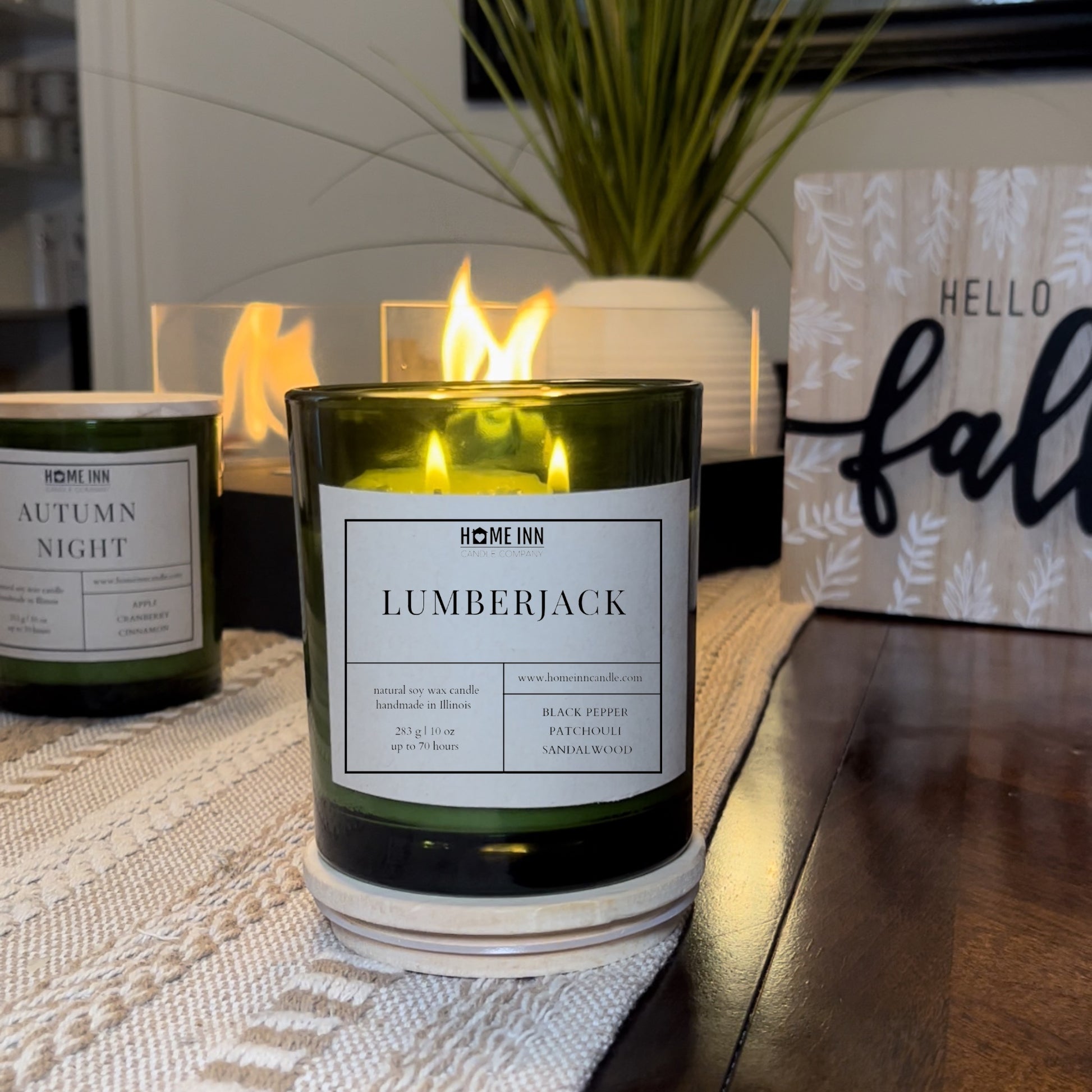 Step into the essence of crisp autumn mornings and flannel-lined forest walks with the Lumberjack Candle from Home Inn Candle Company. Crafted for those who crave bold, grounding aromas, this candle layers earthy patchouli, smooth sandalwood, and a kick of black pepper to create a scent that’s both rustic and refined.