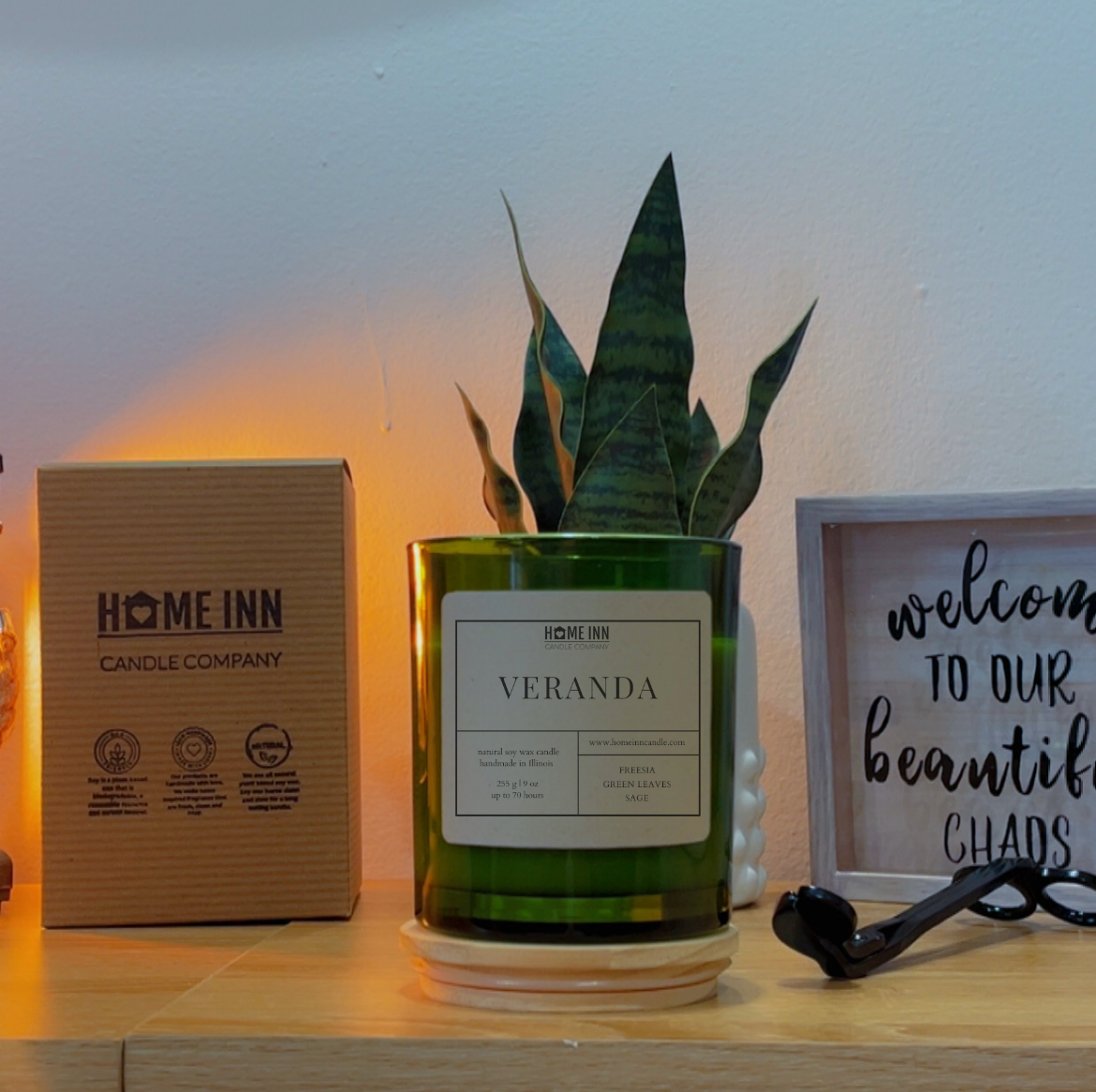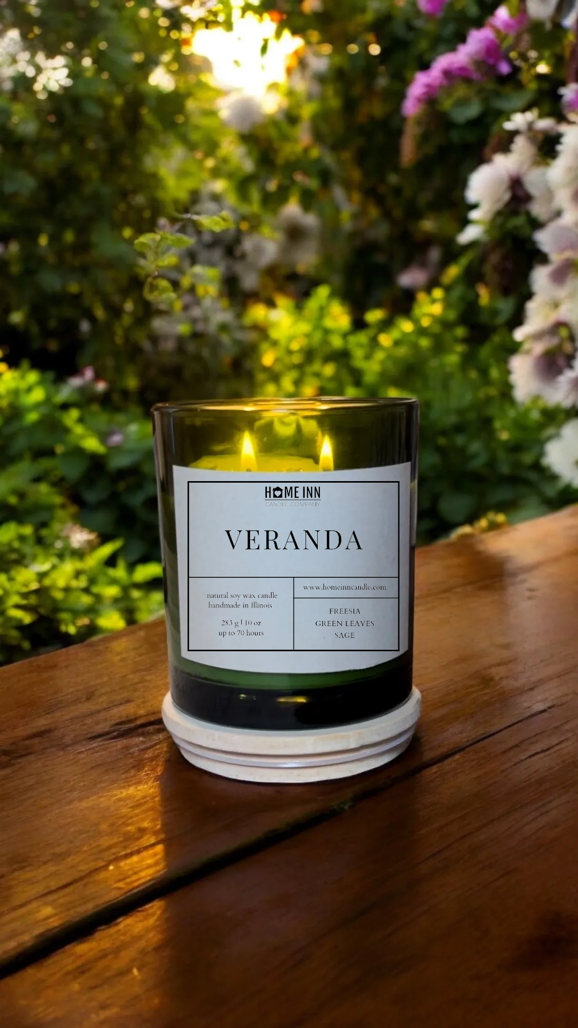 Step onto the veranda and take in the crisp, rejuvenating scent of fresh blooms and ocean-kissed breezes. The Veranda Candle from Home Inn Candle Company captures the peaceful elegance of a morning spent on the porch, where the air is filled with the delicate fragrance of freesia, lush green leaves, and a touch of sea salt.